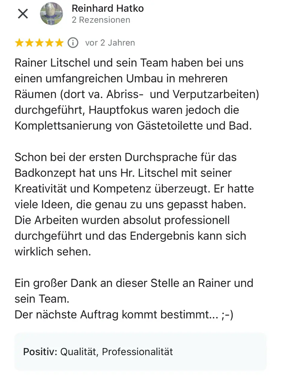 Bestätigt durch zahlreiche Badrenovationen, die jedes Jahr durch Vitasan durchgeführt werden.
