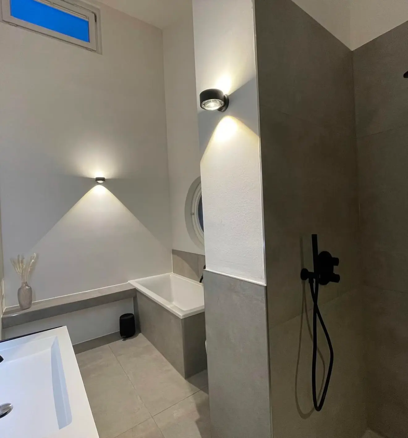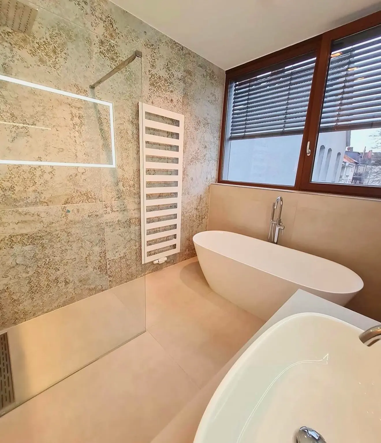 Vitasan verwendet auf Wunsch Design-spachtel oder Mikrozement für ein fugenloses Design in Ihrem Bad.